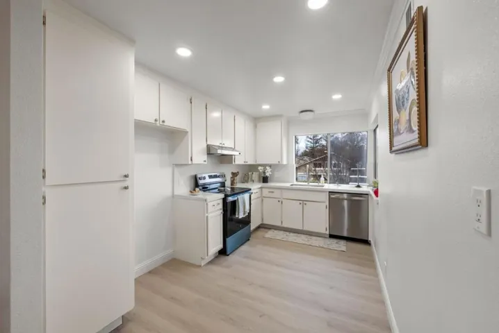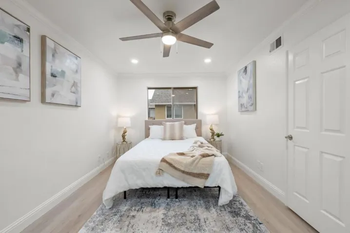 This stunning upstairs townhouse-style condo offers the perfect blend of comfort and convenience. With no neighbors above or below, you’ll enjoy privacy in this spacious 2-bedroom, 1-bathroom home. Freshly painted, with new LED can lights throughout and new flooring, the condo features a cozy kitchen with new appliances and countertops. The home also includes a 1-car garage, additional parking, and access to community amenities such as a swimming pool and children’s playground. The surrounding landscape is beautifully maintained with Redwood trees, pet-friendly, offering peaceful walkways and greenery for relaxation after a long day. Located near Coyote Creek Community Garden, the trail, the community library, Happy Hollow Park, and the Japanese Friendship Garden, this condo is perfect for those who appreciate nature and outdoor activities. Plus, with Costco, Walmart, schools, and public transportation nearby, you’ll have everything you need within reach. Commuters will love the easy access to Highways 101, 680, and 280