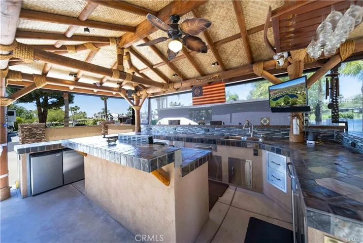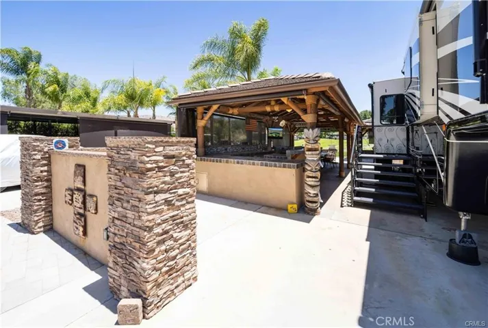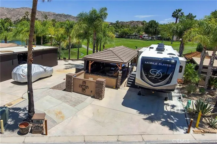 Rancho California RV & Golf Resort *Site 432* This beautifully built site features two separate Casita’s with tiled roof, wraparound gutters, stacked stone front privacy wall pillars and can be enclosed with screens for privacy and comfort. The front structure boasts a large fully equipped kitchen with all of the appliances needed including beverage and wine chiller, gas range/oven, refrigerator, stainless storage drawers/compartments, massive countertop space and decorative glass tile backsplash. The kitchen also features bar seating for 6-8 including a large separate dining space perfect for entertaining and playing games. The rear structure provides a spacious living/family room space with fireplace, flat panel TV and residential laundry. In addition, you have a great exterior patio space with artificial turf and BBQ area – perfect for additional entertaining space. This golf course site has incredible VIEWS of the pond, water feature, fairway, mountains and faces East allowing for afternoon/evening shade! If parking options are a concern, this site provides excellent vehicle and golf cart parking while accommodating the RV. Rancho California RV Resort provides amenities such as a 14 hole Executive PAR 3 Golf Course (no fees for owners), 5 Pools/Jacuzzis, Tennis courts, Pickleball courts, Dog park, Club house, hiking trails, Horseshoe lawn and onsite grocery market. The resort is guard gated with no age restrictions. Monthly HOA fee includes “unlimited” use of the golf course, amenities, trash pickup at lot, water/sewer and common area maintenance. Great opportunity here to begin immediate enjoyment of the RV Resort Lifestyle on your privately owned property. *Financing Available* Golf Cart & RV(5th wheel) also 4Sale, make it a package deal..