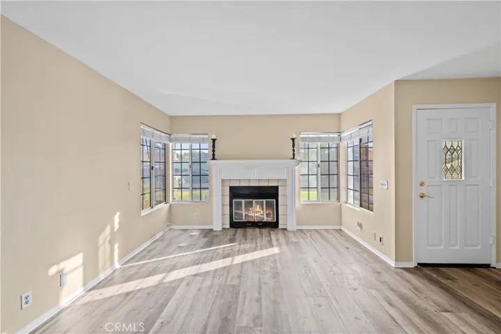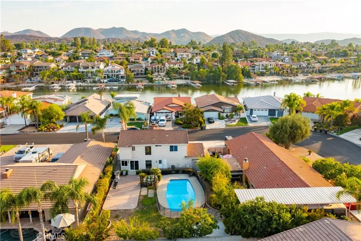 Adorable Pool Home with a huge flat backyard with 3 bedrooms, 2 1/2 baths, loft, living room with fireplace, & almost 1700 square feet across the street from the lake. Cozy living room featuring a wood-burning fireplace with mantel, open kitchen with newly painted white cabinets, stainless steel fridge & dishwasher, & bay window overlooking front yard, kitchen opens up to the dining area with a brand new slider that leads out to the patio and the big backyard & pool. Downstairs also features 1/2 bath that offers a door leading out to the backyard. Newer wood flooring covers the entire main level. Upstairs you’ll find a loft with a fireplace that is the perfect family room, TV Room, or office with built-ins. Good-sized primary bedroom with an attached bath with dual sinks & separate room with shower/commode. 2 additional bedrooms; 1 bedroom with built-in desk, and the other with view of the pool. Additional bath upstairs. 2 car attached garage with laundry & storage (Separate room in the garage that can be removed if desired). Driveway offers boat/trailer parking. Private backyard features a fully fenced sparkling pool with BRAND NEW pump. Beautifully landscaped backyard and front yard with fruit trees. BRAND NEW HVAC system. Located on a great quiet street that is across from the lake. Canyon Lake is an exclusive gated and 24-hour guarded community & includes a private lake for boating, skiing, swimming, wake boarding, fishing, paddle boarding, canoeing, + 6-lighted tennis courts, Olympic size pool, beaches, parks, pickleball and basketball courts, club house, senior center, and clubs plus the community offers an 18-hole golf course golf & riding stables. Rent includes gardener and pool maintenance. Available now.