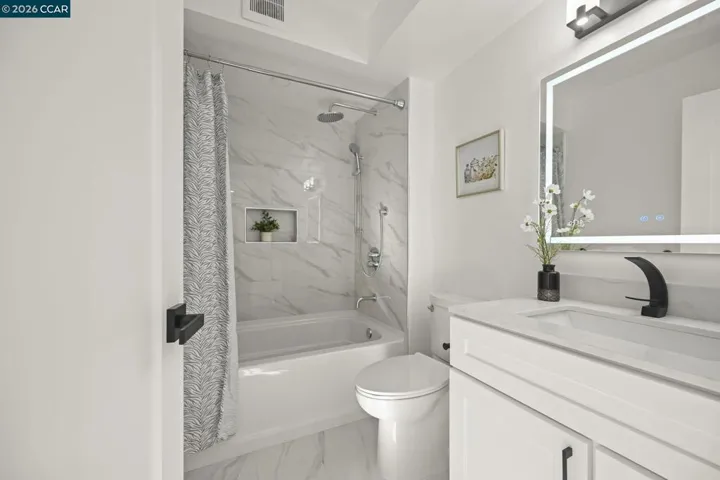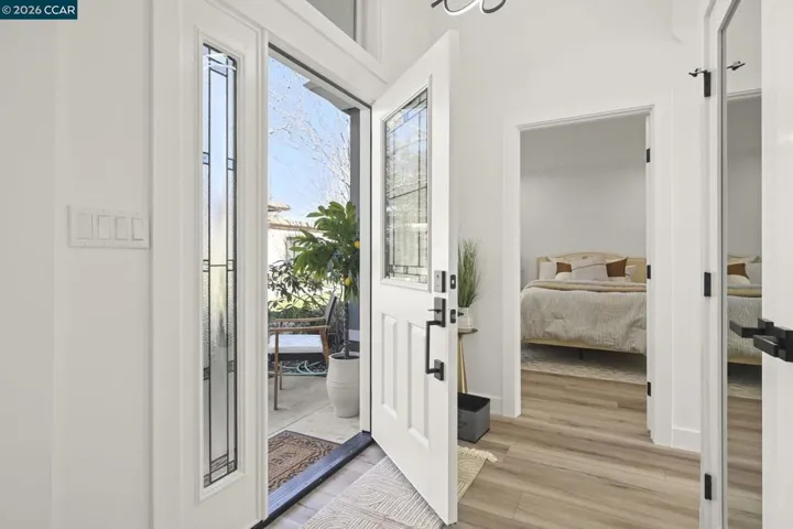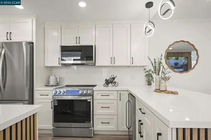 A Truly special opportunity in Rossmoor- See for yourself this tastefully transformed corner Golden Gate residence that delivers style, comfort and unique upgrades. 2 Bedrooms with spacious closets, 2 “Spa like” bathrooms Privacy and serene setting. The modern kitchen features crisp white quartz countertops, custom cabinetry, two spacious pantries, pull out spice storage, three Lazy Susans, under cabinet lighting, a built in wine cooler and sleek appliances- Perfect for preparing gourmet meals. A full sized LG washer and dryer will make laundry days a breeze! This property is finished throughout with new luxury vinyl plank flooring, recessed lighting in every room, new plumbing and electrical and new dual pane windows. A bonus of a new 65 inch LG TV, Electric Fireplace, Private patio with upgraded modern tile. This property, truly is… the “Perfect Place to call home”. Buyer pays $14,000. membership fee, buyer participates in Zomm meeting with Rossmoor WC mutual 2, Rental and Smoking restrictions. Entry 3, Carport Building #254, Space #5.