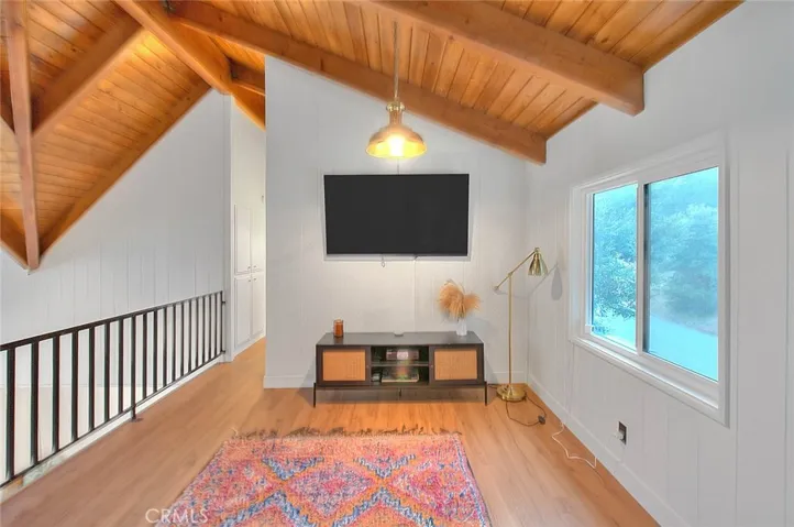 **Modern Mountain Retreat in the North Bay of Lake Arrowhead** Tucked into the pines with effortless curb appeal and level entry, this fully updated Lake Arrowhead retreat blends classic charm with modern upgrades. Recent improvements include a new Trex deck with cable railing, a new retaining wall, and fresh asphalt that creates an inviting and practical arrival experience. With level parking for multiple cars, a boat, or an RV, access is easy and snow-season ready.