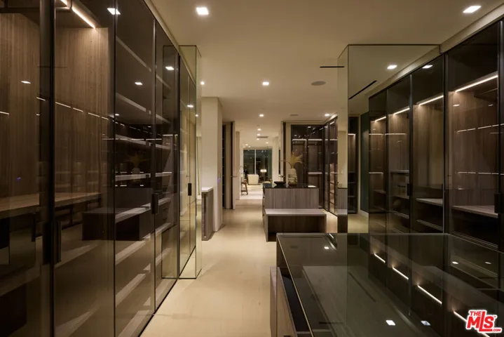 Presenting 1615 Blue Jay Way, originally completed in 2020 and reimagined in 2025 by Dahmor Studio. Set on one of the Bird Streets’ most storied addresses, celebrated for its Beatles heritage, cinematic skyline views, and enduring architectural pedigree, the home commands sweeping vistas from the city to the ocean. A palette of organic materials defines the newly re-envisioned Balearic aesthetic, with a stone facade that evokes the quiet elegance of a Mediterranean villa. Throughout the interiors there is a continuous sense of light and space, anchored by an atrium that runs through the center of the home. Floor to ceiling doors open to the outdoors and frame the panorama beyond, creating a calm dialogue between architecture and landscape. The interiors flow to a series of outdoor living environments, including a generous pool terrace with an outdoor kitchen and dining area set against far-reaching views. The scale of the home is striking yet harmonious: three lounges, two bars, a library, screening room, gym, dining room, two kitchens, office, and sunroom unfold with a sense of ease and intention. The primary suite overlooks the pool and city beyond, offering an expansive wardrobe and a beautifully appointed bathroom, complemented by four additional bedroom suites. A serene architectural retreat in one of Los Angeles’ most coveted hillside enclaves.