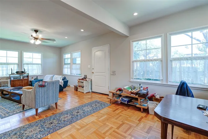 Each unit has the original hardwood flooring, smooth ceiling, ceiling fans in living room and bedroom, windows a/c and wall heating. The non-upgraded unit has tiled kitchen countertops, with retro gas range with oven, and retro wall heating unit. The owner’s previous unit (1515-D) has been fully upgraded with brand new kitchen, brand new bathroom, and in-unit laundry machines. Four (4) units have been upgraded with updated kitchen, In-unit Laundry, mini-split AC. The property has a shared laundry room (leased) and master water heater. Parking is provided via 8 garage spaces – accessible from the alley.