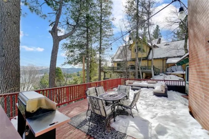Welcome to your dream home, designed for large gatherings where you can recharge, relax,and enjoy life to the fullest. Open floor plan that seamlessly connects the living room, complete with a stone fireplace, chefs style kitchen. The spacious dining area offers direct access to an expansive deck, perfect for enjoying the view of Lake Arrowhead.