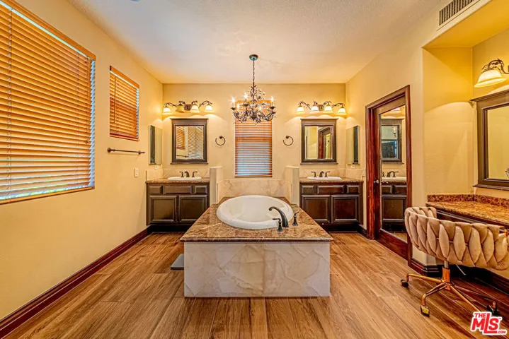 Live the Dream in this prestigious, turnkey model home featuring 5 bedrooms, 4 bathrooms, and a 3-car garage, ideally situated on a quiet cul-de-sac in a highly sought-after, family-friendly neighborhood of Serrano Heights. From the moment you enter, the grand wood-and-iron staircase sets the tone for refined luxury and thoughtful design throughout. Every detail has been carefully curated to deliver both comfort and timeless style. Designed for exceptional living and entertaining, the chef’s kitchen boasts granite countertops, stainless steel appliances, and an expansive walk-in pantry. Host memorable gatherings in the formal dining room or unwind in the formal living room highlighted by a stunning fireplace. The spacious family room offers a warm, inviting atmosphere perfect for cozy evenings by the fire. The luxurious primary suite is a true retreat, showcasing a spa-inspired bathroom with a large tiled walk-in shower, freestanding soaking tub, dual granite vanities, and a dedicated sitting vanity. Completing the suite is an impressive cedar-lined walk-in closet with custom built-in organizers an elevated touch found in Orange County’s finest homes. The second level features a built-in office nook, a large laundry room with custom cabinetry, and a one-of-a-kind media/game room with its own fireplace, ideal for entertaining or relaxing. Step outside to a private, resort-style backyard that rivals the home’s stunning interior. Enjoy the custom saltwater pool with a dramatic waterfall, a swim-up bar, and a fully equipped outdoor kitchen perfect for hosting unforgettable gatherings. High-end security systems ensure peace of mind, privacy, and comfort. This exceptional residence offers the perfect blend of luxury, functionality, and resort-style living.