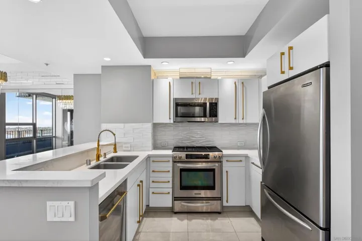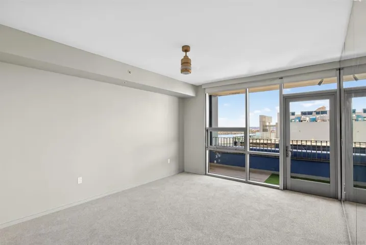 Enjoy expansive city views from this 22nd-floor condo offering over 1,250 sq. ft. of well-designed living space and a rare full-length balcony. The second bedroom is currently being reconfigured with the removal of the built-in desk and cabinetry, allowing it to function as a true second bedroom. Fresh interior paint and new carpet in the bedrooms create a bright, updated feel throughout, while the open kitchen with stainless steel appliances flows into a sun-filled living area with floor-to-ceiling windows. Additional highlights include two assigned parking spaces, oversized storage, and Google Fiber high-speed WiFi included in the rent. ICON residents enjoy secure access, concierge services, a fitness center, and resort-style amenities, all just steps from Petco Park, dining, nightlife, public transit, and the vibrant East Village.