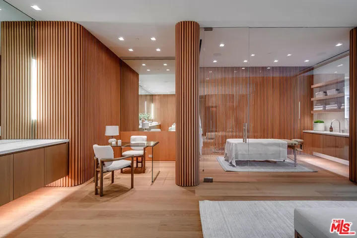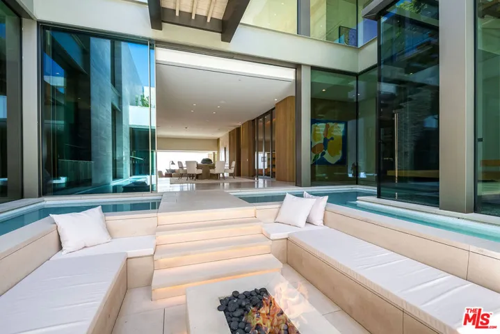 Experience a heightened level of contemporary luxury in this newly constructed estate nestled within the coveted Bird Streets. Crafted with exceptional materials and finishes, this residence defines elevated Los Angeles living, offering sweeping jetliner views from Downtown to the Pacific Ocean. Designed by Paul McClean, built by Dugally Oberfeld, and appointed with interiors by Marmol Radziner, the home presents an unparalleled level of design and amenity. Encompassing approximately 15,200 square feet with five bedrooms and nine baths, the estate provides generous accommodations for entertaining, guests, and staff. A gated drive ensures privacy and security, leading to a subterranean six-car garage. Arrival begins at a serene, walled desert-inspired courtyard, where a bridge extends above the lower-level pool, setting a dramatic tone. Outfitted with advanced smart home technology and expansive automated glass walls, the interiors seamlessly capture the surrounding vistas. The main level features a sophisticated living room with fireplace, formal dining room, two powder rooms, an entertainer’s kitchen with eat-in island and breakfast area, and a secondary prep kitchen equipped with Wolf and Sub-Zero appliances. Two guest suites accompany a stunning primary suite complete with panoramic views, custom walk-in closet, and a luxurious marble bath with sauna. Indoor spaces transition effortlessly to an expansive terrace with a sunken fire feature, built-in seating, and a striking zero-edge pool and spa. The lower level, accessed by a floating staircase or elevator, reveals a true entertainment and wellness retreat, including a second pool, fire feature, expansive family room with bar and fireplace, glass wine display, game room, covered patio with spa, theater, gym, and dedicated wellness suite with massage room, shower, and sauna. Additional amenities include two guest suites, a powder room, and laundry. This exceptional hillside sanctuary is moments from Sunset Boulevard and the finest dining, shopping, and nightlife Los Angeles has to offer. Lease available fully furnished. Minimum of 1 year, no short term