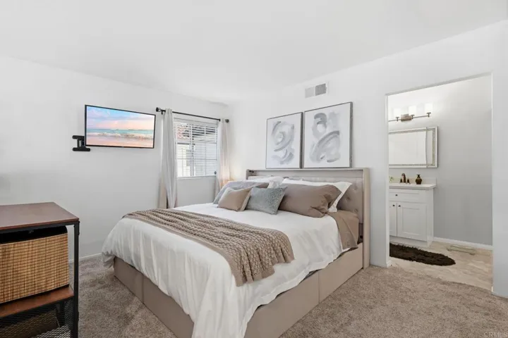 Welcome to Eastlake Shores, one of Eastlake’s original neighborhoods, sought-after for its resort-style amenities, lake-style living and sense of community with no Mello Roos. This bright corner residence has been thoughtfully reimagined, showcasing a fully remodeled, open concept kitchen with top-tier appliances, sleek new countertops, and a generous breakfast bar. The inviting living area is filled with natural light, creating a warm, modern atmosphere that feels instantly welcoming. Step outside to your private, east facing patio, surrounded by lush greenery—an ideal extension of your living space and the perfect setting for morning coffee or relaxed outdoor gatherings. Enjoy the comfort and convenience of beautifully updated bathrooms, new flooring throughout, a brand new water heater, and a 2022 AC and furnace installation complete with new ducting. The laundry area has been smartly relocated to the 1st floor and includes a newer stackable washer and dryer. A striking spiral staircase leads to the loft style primary suite, where vaulted ceilings and an oversized window with wood shutters create an airy, elevated retreat filled with natural light. Residents of Villa Martinique enjoy an exceptional location near SR 125 and directly across from a scenic man made lake with paddle boating available. The vibrant Eastlake master planned community offers an array of amenities, including a beautiful lagoon, peaceful walking trails, multiple swimming pools, clubhouses, tennis and basketball courts, playgrounds, and more—all within close proximity to schools, shops, and dining.