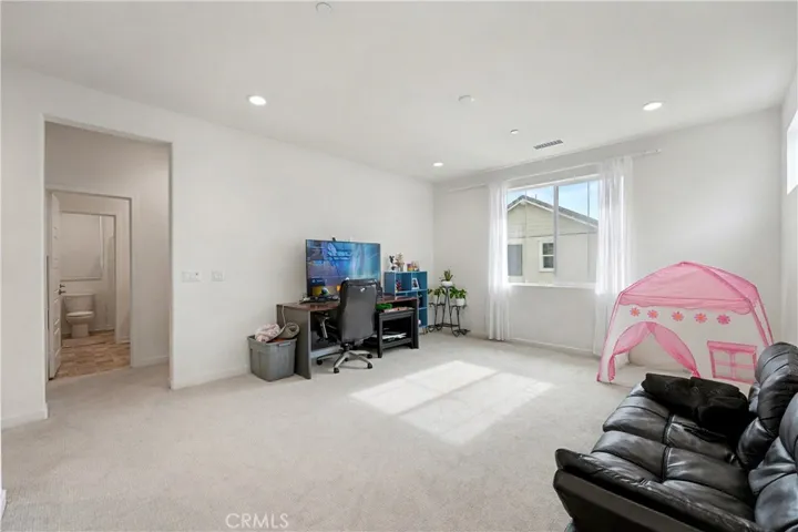 Corner lot single family style home with 2 yards, 3 car attached garage, paid off solar panels and great rating schools. Discover this stunning two-story home, built in 2023, where modern living meets convenience! This spacious residence boasts 4 bedrooms and 3 bathrooms, a big loft, providing ample space for family and guests. Thoughtfully designed, this home offers a convenient downstairs bedroom with a full bath, perfect for guests or multi-generational living. The open-concept kitchen is highlighted by an oversized island, vinyl plank flooring. Upstairs, the primary suite showcases double sink with big shower room. An oversized loft on the second floor could be used as a family theater. The finished backyard is complete with concrete, providing a low-maintenance lifestyle. Nestled on a desirable back corner lot, this home offers both privacy and plenty of outdoor space for relaxation or entertaining. Located in the best location of Fontana, you’re just minutes away from shopping, dining, and parks, making it the perfect place to call home. Don’t miss out on this incredible opportunity to own a modern gem!