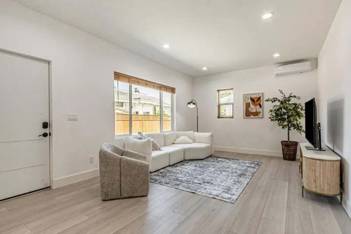 Charming renovated single family home with ADU in San Jose! The main residence was extensively remodeled and expanded in 2023, now offering a modern 3-bedroom, 2-bathroom layout with two independent entrances. Every detail has been refreshed, including a new kitchen, flooring, windows, plumbing, wiring and fresh interior paint. The home is also equipped with a mini-split system for year-round climate control. Adding significant value is the stunning, 1,000 SF ADU. This detached unit boasts high ceilings, 2 bedrooms, 2 bathrooms, a full kitchen, and a living room. It is further enhanced by its own dedicated solar panel to maximize energy efficiency. The renovations for the main house and the construction of the ADU were permitted. A long gated driveway easily accommodates four cars, plus a basement for additional storage needs. The prime location is just a 3-minute walk to Buena Vista Park and minutes from premier destinations like Santana Row and Westfield Valley Fair. Easy access to Highways 17, 280, and 880. Close to San Jose State University and tech giants like Apple, Nvidia, and AMD.