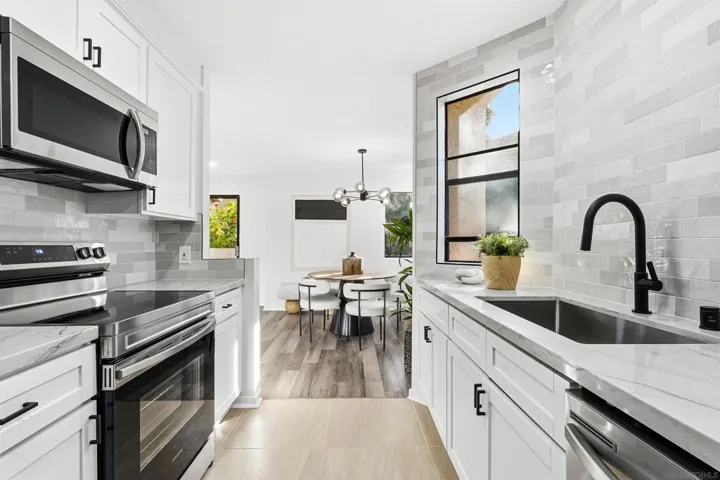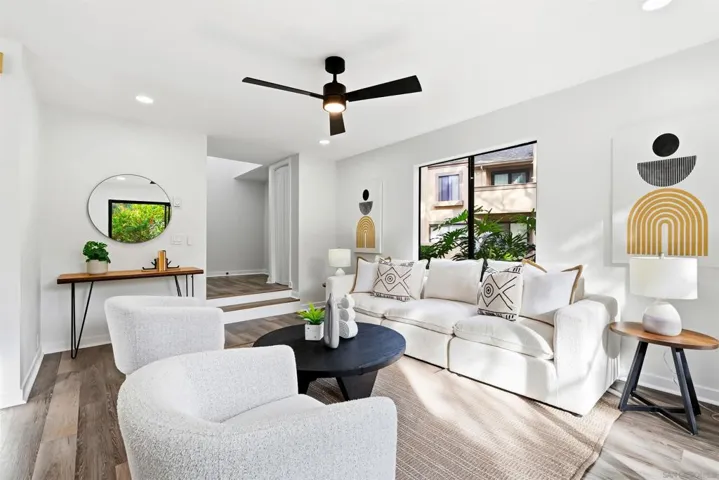 Back on market at no fault to property- Newly remodeled end-unit property in the highly sought-after Woodlands West community of UTC. This light-filled home features LVP flooring, fresh interior paint, and updated lighting throughout. The modern kitchen is equipped with shaker-style cabinetry, quartz countertops, designer tile backsplash, and brand-new Samsung stainless steel appliances. Upstairs, the spacious primary bedroom boasts soaring vaulted ceilings and a private balcony retreat. Second room upstairs makes a great additional bedroom or office. Private oversized two car garage PLUS additional parking available throughout the community. Enjoy the pool, sports court and amazing landscaping throughout this great complex. Additional highlights include an attached oversized two-car garage and an ideal end-unit location offering added privacy and natural light. Centrally located near shopping, dining, and quick access to the 5 freeway.
