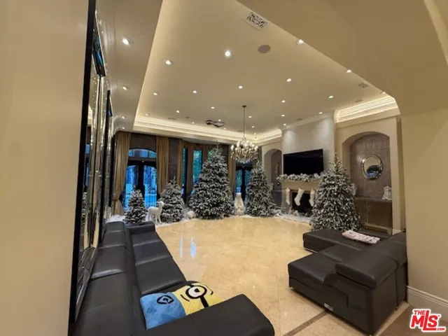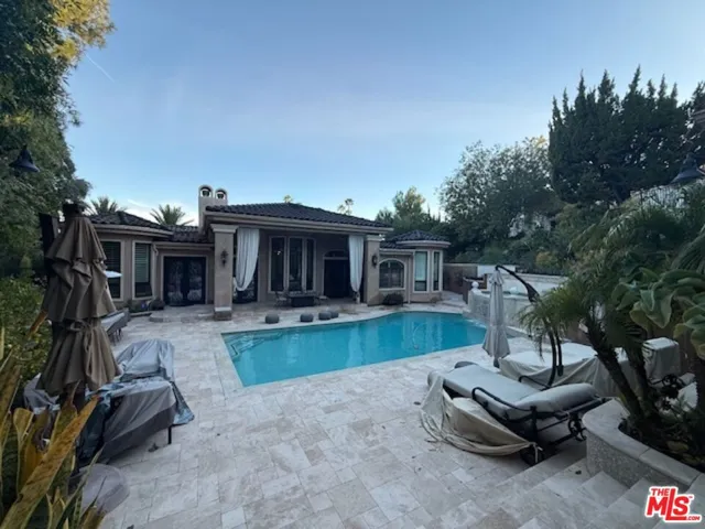Built in 2008, this single-story gated Mediterranean Villa is an architectural masterpiece that combines privacy, prestige, and unmatched craftsmanship. A dramatic entry with soaring ceilings, imported marble with onyx inlay, and 24″ Italian limestone floors sets the tone for the open, elegant floor plan. Designed for grand entertaining, Milgard French doors create seamless indoor-outdoor living, opening to travertine-tiled patios, a PebbleTec pool with Bellagio-inspired mosaic stone coping, an elevated spa, and a cascading waterfall with jet sprays. The outdoor kitchen and loggia are fully equipped with granite counters, Viking grill, warming drawer, and refrigeratorperfect for California living at its finest. The chef’s kitchen features custom solid hardwood and beveled glass cabinetry, a large granite island, and professional-grade Miele and Thermador appliances. The primary suite offers a luxurious retreat with a spa-like bathroom and oversized walk-in closet. Spacious secondary bedrooms each feature lavish en suite baths. Additional highlights include a grand living room, formal living room with full bar, elegant dining room, premium interior and exterior lighting, and fully owned solar. Every detail of this trophy estate reflects uncompromising quality and timeless design. Buyer’s agent and buyer are advised to perform their own due diligence on all information provided in this listing. Seller and seller’s agent make no guarantees and shall not be held responsible for any inaccuracies.
