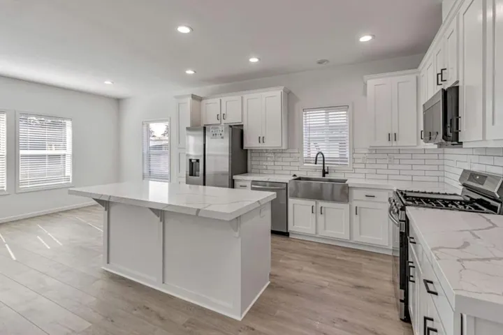 Welcome to your new home in the Casa Alondra Community! This spacious 3 bedroom and 3 bathroom home spans 1,760 sq ft and offers a modern upscale living experience. The kitchen is well-equipped with upgraded quartz countertops, subway tile backsplash, huge kitchen island, farmhouse sink, and stainless appliances. The home features high 9′ flat ceilings, laminate flooring, lino in wet areas, and carpet in bedrooms. The property is designed with energy efficiency in mind, featuring ceiling insulation, double pane windows, Energy Star appliances, and a thermostat controller. The laundry area includes hookups only, providing convenience for your laundry needs. Situated in the Oak Grove Elementary School District, this home is perfect for families.