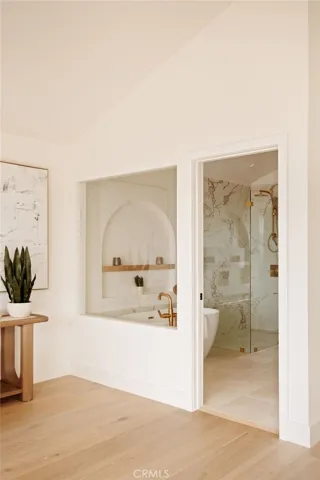 Where refined design meets coastal living, this thoughtfully remodeled residence offers a seamless blend of comfort, functionality, luxury and modern style. From the moment you enter through the custom Pinky’s steel front door, the home reveals an open-concept layout with wide-plank white oak flooring extending throughout the home, complementing the warm, neutral palette with beautiful natural light. The kitchen features custom rift white oak cabinetry, top-of-the-line Thermador appliances, and a layout designed for everyday use and entertaining alike. A walk-in pantry and a well-appointed laundry room add convenience and efficiency. Architectural details such as the custom arched bookcase and built-in bar introduce both character and sophistication. A striking 12-foot Pinky’s steel bi-fold door connects the main living space to a private backyard retreat, complete with TimberTech decking—ideal for outdoor dining and relaxation. Upstairs, the primary suite offers a private deck accessed through steel Pinky’s French doors with expansive ocean views. The spa-inspired bathroom and custom walk-in closet create a serene, retreat-like atmosphere. There are three additional bedrooms located on the main entry level, including one with ocean views. Additional features include a garage with a custom wood door, operational by phone app. Conveniently located near Riviera Village, the property offers close proximity to shopping, dining, and the beach.