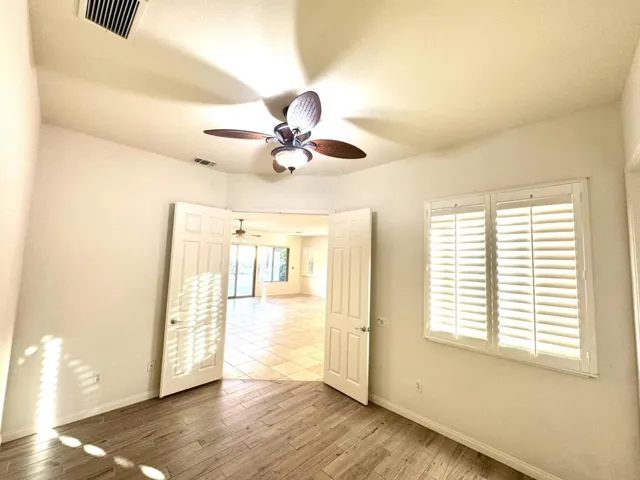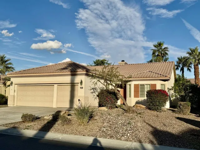 PRICED TO SELL NOW!!! One of the BEST Priced SAN BENITO Model in SCSH. This beautiful,NEWLY PAINTED 2 bedroom, 2 bath, Plus DEN, Plus Separate Office (or can be a small bedroom for Gkids). 2.5 car garage (Golf Cart space), home also includes a custom private pool w/cascading spa and additional large boulder/rock waterfall located on a premium lot in a quiet Cul D Sac. This SAN BENITO offers a wide open floor-plan with a great room facing the kitchen, which includes a breakfast bar, solid granite countertops, many cabinets and a breakfast nook to boot. The wood shutters give it the elegant touch. The flooring throughout is an 18×18 tile floor and the rooms have NEW CARPET. The spacious Master bedroom has a view to the pool area and an exit to the stucco covered patio. The Master bath includes a double vanity, bathtub and separate shower and a large walk-in closet. SCSH is the best kept secret in the Coachella Valley for the amount of amenities you get w/such a low HOA. SCSH residence get to enjoy a PGA style regulation immaculate golf course with MILLION DOLLAR VIEWS, as well as a PAR-3 course which is rated top 10 in the country and don’t forget the 18 hole putting course for you and friends enjoyment. In addition there are two well equipped fitness Centers, including one with an interior walking track. There are several tennis courts and a strong Tennis Club, as well as large Pickle Ball community, Bocce Ball, Billiards, Social Clubs, and so much more. Sun City Shadow Hills has easy freeway access a short drive to the Palm Springs Airport and close to lots of shops and restaurants. For more information on the amenities for the development go to….www.SCSHCA.ComDon’t delay Call your preferred REALTOR Now and START PACKING! This home is PRICED TO SELL NOW!!!