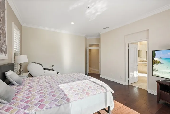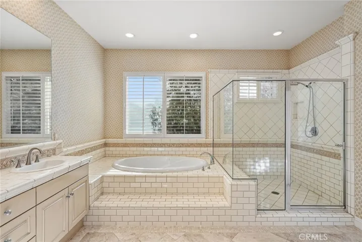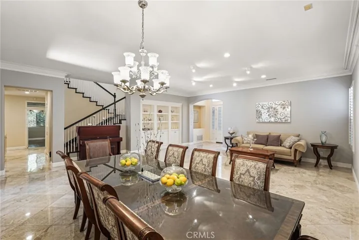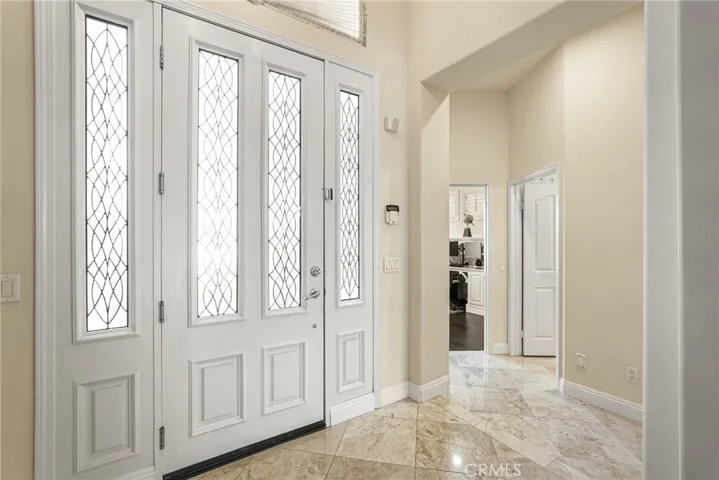 Range Pricing. Seller will entertain & respond to all offers between $1,749,000. and $1,829,000. Welcome to this exceptionally rare Milan model, ideally situated within the highly desirable guard-gated Renaissance community. Originally built as a former model home, this residence showcases refined upgrades & one of the most sought-after & limited floor plans in the neighborhood—only a handful were ever constructed. Offering the flexibility of a two-story design with the rare advantage of a primary suite on the main level, this home function is beautiful as either a convenient single-story or a spacious two-story retreat. Enter through elegant glass doors into a light-filled, open floor plan accented by gleaming marble floors, crown molding & soaring ceilings. Just off the entry, a versatile bedroom with custom built-ins, wainscoting & wood flooring is ideal for a home office or guest suite with an adjacent guest bath featuring a custom-tiled walk-in shower. The chef’s kitchen is bright & inviting, featuring modern cabinetry, upgraded quartz countertops, stainless steel appliances & additional storage in the breakfast nook. Open to the family room, the space is enhanced by custom built-ins, a detailed mantel over the fireplace & a sliding door that frames serene backyard views. Tucked away for privacy, the main-level primary suite is spacious & sunlit, offering direct backyard access through sliding doors. The spa-inspired ensuite includes a soaking tub, oversized separate shower, dual vanities & a generous walk-in closet. A third downstairs bedroom with its own private bathroom & separate vanity area provides ideal accommodations for guests or multigenerational living. Upstairs, a flexible bonus room w/cozy fireplace & custom built-ins offers endless possibilities as a secondary living area, office or gym. An additional oversized bedroom with ample closet space & a full bathroom featuring designer wallpaper & a tub/shower combo completes the upper level. The private backyard oasis is lushly landscaped designed for both relaxation & entertaining, featuring multiple seating areas, a putting green & mature greenery. Additional highlights include a laundry room w/sink, a three-car garage, artificial turf in front & rear yards providing minimal water usage & paid off solar. This prestigious community is known for its excellent schools, proximity to parks, easy freeway access & is just minutes from The Vineyards with popular shopping & dining destinations.