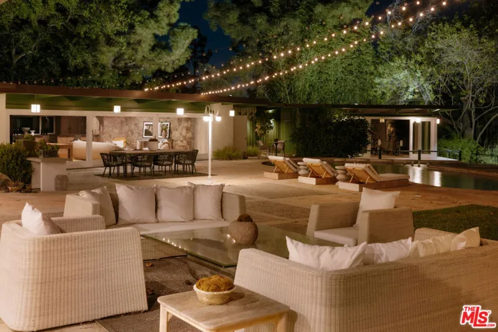 Set within a quiet pocket of Beverly Hills, 1177 Loma Linda Drive is a substantial single level estate defined by privacy, architectural heritage, and expansive views. Created as the personal residence of renowned architect S. Charles Lee, the home reflects a disciplined design approach paired with a strong connection to its natural surroundings.The residence sits on an unusually flat 1.3 acre property comprised of two legal parcels. Elevated positioning allows for open views across Beverly Hills, Century City, and the Pacific Ocean, while the grounds remain peaceful and shielded from neighboring homes. The setting offers a rare sense of openness just minutes from the center of the city. Six bedrooms and ten bathrooms are thoughtfully arranged to support both comfortable daily living and effortless entertaining. The home features generous formal living and dining spaces, a large kitchen with adjoining breakfast room, private office, family room, and a dedicated exercise and yoga studio overlooking a koi pond with waterfalls and flowing water features. Outdoor amenities are a defining element of the property. A resort style pool sits alongside one of the largest private ponds in Beverly Hills, home to koi fish and bordered by a meandering stream and landscaped walking paths. A night lit basketball and pickleball court, spa, expansive lawn, and nature walk create multiple environments for recreation, relaxation, and gatherings.Additional features include a three car garage, a spacious motor court, and two gated entrances allowing for discreet service access and seamless hosting. Offering architectural significance, scale, and an exceptional setting, 1177 Loma Linda Drive stands as a rare and enduring Beverly Hills estate.