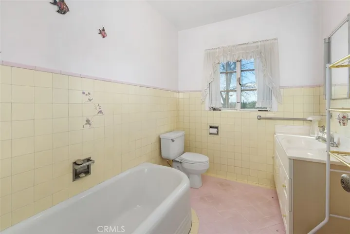 Experience the enduring appeal of this charming 1936 Mediterranean-style estate at 41699 Acacia Avenue in Hemet, CA 92544, set on approximately 8.92 acres that include the main parcel and an adjacent vacant land parcel. This vintage home features spacious bedrooms—with two upstairs and a third plus primary downstairs—a sunny retro kitchen with built-in breakfast nook, vintage tiling, and glass cabinet doors, a formal living room boasting a wood-paneled ceiling and grand fireplace, retro bathrooms, and a massive finished basement with knotty pine ceilings ideal for storage, recreation, family gatherings, or guest quarters. Outside, enjoy mature trees, multiple brick patios, full wrought-iron fencing with gated access, a detached two-car garage offering potential for ADU conversion, and extensive concrete parking for RVs or toys. Situated in an Opportunity Zone with medium-density characteristics, buyers should confirm subdivision possibilities with the County of Riverside, potentially allowing division into 9,000 sq ft lots for enhanced development potential.