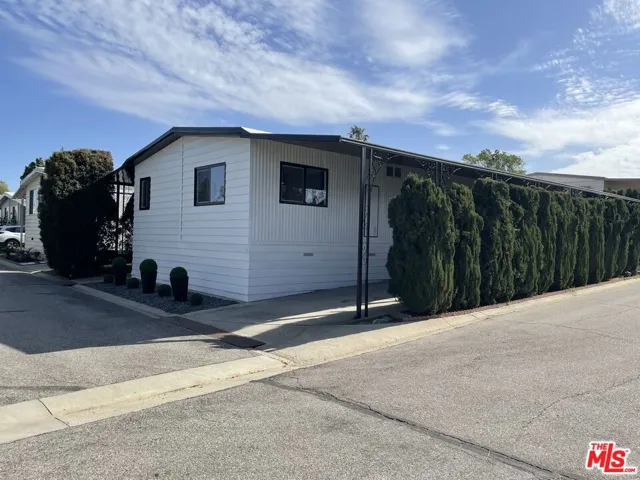 Move-in ready! Private, quiet, remodeled manufactured home in Camarillo Mobile Estates. 55+ Gated Community with mobile Security Patrol. Spacious 1440 sq. ft. open floor plan has 2 bedrooms + 2 bathrooms and no wasted space. Just completed renovation inside and out with many upgrades. Best location in the park on a desirable corner lot and ideally located next to the clubhouse and guest parking. Hedges border the property for privacy. Usable private outdoor space for indoor-outdoor living with attached new oversized 8′ x 24′ porch and 8′ x 12′ deck. Roof redone with new 10 year elastomeric coating. Newly painted inside + outside. Large family room could be converted into a 3rd bedroom. Dual pane windows and sliding door, new wide plank pet-friendly waterproof flooring, new light switches + outlets, LED lighting and ceiling fans. Kitchen features a commercial faucet, purified water filter, soap dispenser, gas cooktop and wall oven. Direct access to the deck and BBQ for easy grilling. Laundry is next to the kitchen. Bathrooms remodeled with marble vanities, recessed medicine cabinets, Kohler and Toto toilets, plus rain shower heads with sprayers. Primary bathroom features an oversized walk-in shower, extra vanity counter and large walk-in closet. Home has tons of storage including two linen closets, entry closet and built-in cabinets. More storage underneath the 8′ x 12′ deck. Additional large storage shed with electricity. Oversized 12- foot tall carport can accommodate an oversized van, cargo trailer, boat or RV. Dog play area on the side yard with turf. New front entry steps (which are 8-foot wide) can easily accommodate a ramp for handicap access. Daily Camarillo Trolley Service to Old town Camarillo, local shopping centers, the Outlets, Metro link with hourly pick up at the front gates. New space rent is $2,060 per month and includes trash service, use of the park’s amenities and mobile security patrol throughout the neighborhood. **No Annual Property Taxes** $75 yearly fee paid to HCD.