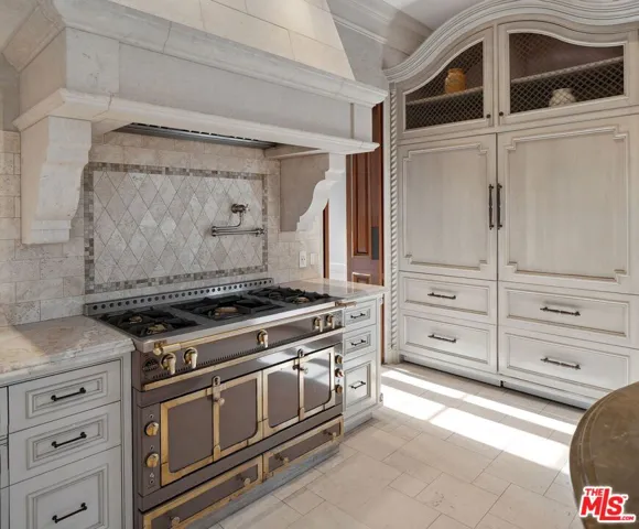 Nestled on a coveted 16,008 sq. ft. lot in one of North Kentwood’s most desirable neighborhoods, this extraordinary Mediterranean estate blends timeless elegance with modern luxury. Offering 8,733 sq. ft. of meticulously crafted living space and a 1,166 sq. ft casita, this private retreat showcases unparalleled craftsmanship and high-end finishes, including Italian marble, limestone, and natural woods, in a thoughtfully designed layout that exudes sophistication and warmth. The main residence features five bedrooms, seven bathrooms, and two half baths, complemented by a two-bedroom, one-bath guest house an ideal haven for multi-generational living or stylish guest accommodations. Both homes are fully equipped smart homes, powered by advanced Crestron technology, allowing seamless control of lighting, climate, security, and entertainment systems. Constructed with flame-retardant lumber, a robust water-softening and filtration system, solar panels, and a hard-wired security system with geo-fencing, the estate offers state-of-the-art innovation with enduring quality. Enter through the grand foyer, where soaring ceilings and a sweeping curved double staircase immediately set a tone of opulence. The open yet well-defined floor plan flows effortlessly between formal and informal living spaces. A stately formal living room with a gas fireplace and mahogany doors opens to the lush backyard, while the sophisticated formal dining room offers a perfect setting for elegant gatherings. The family room, featuring a striking coffered ceiling, pocket doors, and an outdoor fireplace, invites relaxation and seamlessly merges indoor and outdoor living. The heart of the home is an expansive kitchen equipped with high-end appliances, a La Cornue stove, a spacious marble island, and a separate chef’s kitchen for effortless entertaining. A full-service wet bar enhances the home’s hosting capabilities. The main level also includes a private office with coffered ceilings and French doors opening to the front loggia and garden, a hand-carved limestone staircase spiraling around a three-story touret with niche lighting, an adjacent powder room, and an elevator for added convenience. Designed for both grand entertaining and serene retreats, the backyard is a true sanctuary, featuring a large salt-water pool and spa, two outdoor fireplaces, and a tranquil fountain surrounded by lush, mature landscaping that offers exceptional privacy. Upstairs, the primary suite is a luxurious escape, complete with a private balcony offering sweeping views, a cozy fireplace, a spa-inspired ensuite bath with heated floors, a soaking tub, a separate shower, dual vanities, and a refrigerated bar area. Expansive dual closets provide impeccable storage. Four additional en-suite bedrooms ensure comfort and privacy for family and guests, while a conveniently located laundry room adds everyday ease. A first-floor en-suite bedroom, with a refrigerated minibar and French doors to the garden, offers flexibility and accessibility. Entertainment and lifestyle amenities abound, including a temperature-controlled wine cellar for collectors, a private state-of-the-art movie theater with custom seating, an adjacent full-service wet bar and snack center with microwave and refrigerated drawers, a full salon with hair and nail stations, a dedicated gift wrapping, hobby, and homework center, plus a large gym for wellness enthusiasts. The separate guest house offers fully independent living with a custom kitchen, washer/dryer, two large bedrooms, a full bath, and a separate outdoor pool bath, ensuring extended family or guests enjoy complete comfort and privacy. A four-car garage and a gated driveway provide secure parking for six or more vehicles, adding everyday practicality to the estate’s grand presence. This rare offering presents a unique opportunity to own an estate that flawlessly blends luxury, functionality, and exquisite design all within the vibrant heart of Westchester.