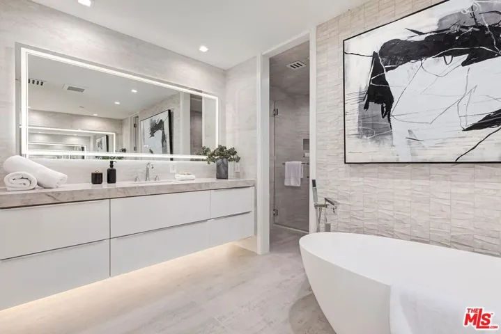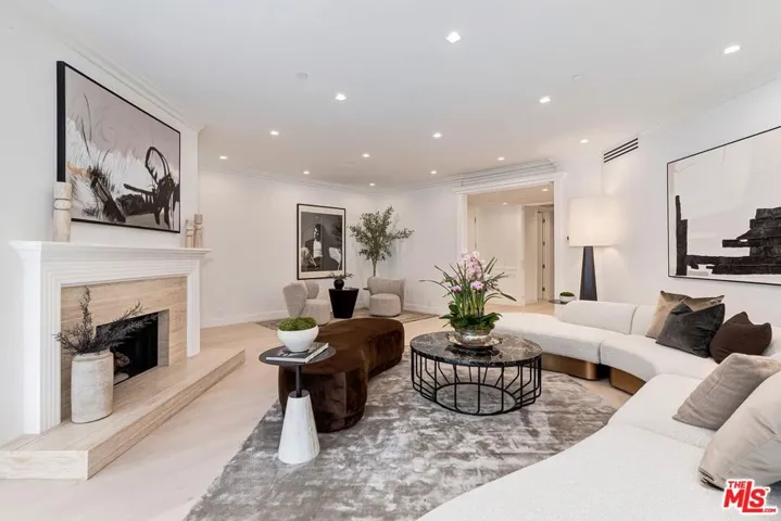 Best quiet location in building, with southern exposure. An elegant sanctuary in the heart of Beverly Hills, this sleek, modern, and timeless residence designed and completely renovated new by a notable European design team offers the rare feeling of living within your own secure, private enclave just moments from the city’s most celebrated destinations. Thoughtfully curated and impeccably executed, every detail reflects refined elegance, from wide-plank white oak flooring throughout to custom built-ins, streamlined new appliances, and bespoke walk-in closets with tailored cabinetry. Stunning and private, this sun-drenched, south-facing two-bedroom residence with a flexible den ideal as a home office, media or viewing room, or convertible third guest space is located in one of Beverly Hills’ most coveted full-service buildings. Set on a serene, tree-lined street just steps from Cedars-Sinai, the Beverly Hills, and the boutiques and restaurants on Robertson Blvd, the home enjoys a highly desirable south-facing floor plan, generous street setback, and exceptional natural light throughout. The beautifully designed interiors are defined by floor-to-ceiling windows, modern energy-efficient recessed lighting, elegant crown moldings, and custom wainscoting, creating a refined yet welcoming ambiance. Designed for effortless entertaining, the residence features a gracious living room with fireplace opening to a private terrace, a formal dining room, and a spacious den with wet bar suited for entertaining, relaxing, or working from home. The bright, elegant gourmet kitchen is both functional and visually striking, appointed with porcelain countertops, top-of-the-line appliances, custom cabinetry accented by dramatic under-counter lighting, and a sunlit breakfast area overlooking lush greenery. The expansive primary suite is a true retreat, offering custom walk-in closets and a luxurious spa-inspired bath with dual vanities, separate water closets, a soaking tub, and an oversized walk-in shower delivering a five-star hotel experience in the comfort of home. The second bedroom features a custom closet and a beautifully finished en-suite bath, while a dedicated laundry room with built-in cabinetry completes the residence. The IV Seasons North complex has recently undergone thoughtful updates to its lobby, corridors & elevators and is renowned for its exceptional full-service lifestyle. Amenities include 24-hour doormen, valet and concierge services for residents and guests, a heated pool and spa, a fully equipped fitness center, secured parking, and additional storage. Moments from Rodeo Drive, the Beverly Hills Hotel, world-class dining, shopping, and cultural landmarks and with easy access to West Hollywood and the Farmers Market this exceptional residence presents a rare opportunity to enjoy an elevated, turnkey in-town pied-a-terre defined by timeless design, premier services, and the unmistakable sophistication of Beverly Hills.