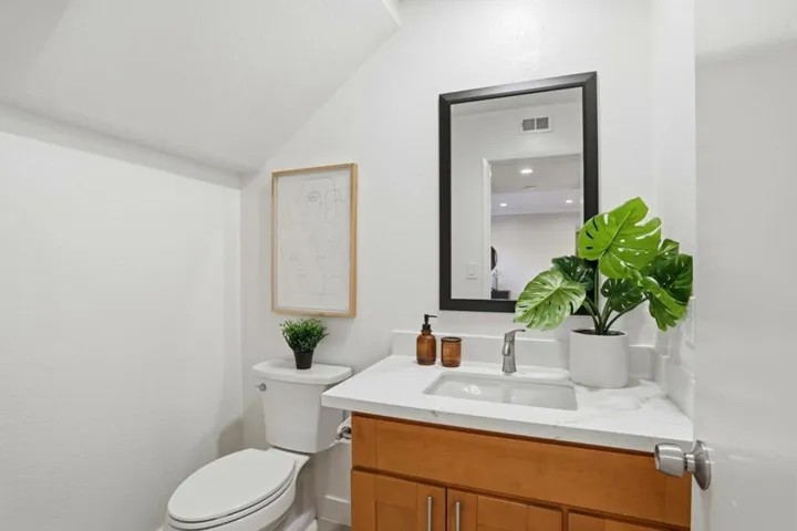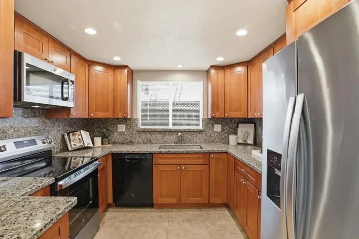 Amazing Condo with Town house floor plan with 2 story 4 Bedrooms 2.5 bath home. Open floor plan, large private Patio Area, Attached Garage & Carport for your 2 cars and storage. New Luxury Flooring, Baseboards, Modern Paint Colors, Newer Kitchen with granite top kitchen, New recessed lighting. Complete Bathroom remolded. Newer Central Heating and AC System. All double pane windows. This property is like new. Washer and Dryer located upstairs. Complex includes refreshing pool. Close to schools, shopping and freeway access. Very affordable HOA dues! Ready to Move In.