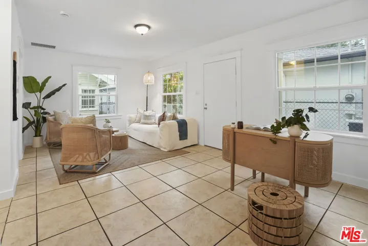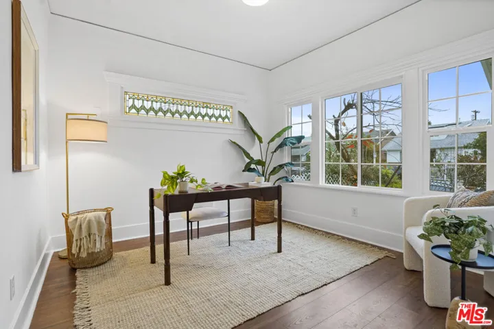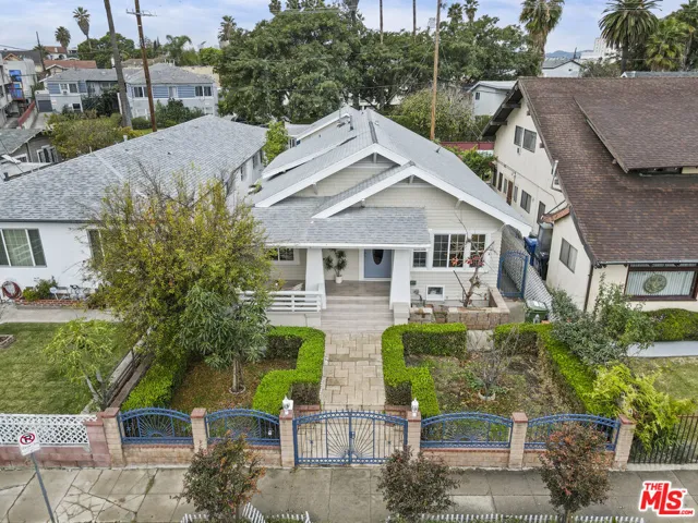Set along a residential block in Rampart Village, this TWO-ON-A-LOT property includes a 1912 Craftsman at the front of the lot and a detached one bedroom/one bath rear residence. Together, the homes offer approximately 2,078 square feet and a configuration well suited to owner-occupants, rental income, or multi-generational living. The front house presents a classic Craftsman profile, with a deep covered porch, wide roof overhangs, and tapered columns that establish its proportions before entry. Inside, wood floors run throughout the main living areas, paired with high ceilings and substantial trim work. The living room is organized around a wood-burning fireplace with newly installed patterned tile surround and broad mantle. Built-in seating and storage flank the fireplace, with windows bringing in steady natural light. Wide cased openings lead from the living room into the formal dining room. Original built-in cabinetry with glass-front uppers and lower storage spans one wall, offering both display and function. The room is generously sized and clearly defined while remaining connected to the surrounding spaces. French doors open toward a secondary porch, extending the dining area outward. The kitchen sits just beyond the dining room and offers a clean, functional layout with white cabinetry, new countertops, newly tiled surfaces, and stainless steel appliances. The front residence includes two bedrooms, two bathrooms, and a separate den, allowing flexibility for a home office, library, or additional living space. Period details such as leaded and stained glass accents, substantial baseboards, and consistent window casings remain intact throughout, giving the interior a cohesive and authentic feel. Positioned at the rear of the lot, the detached second home offers a one-bedroom, one-bath layout with a straightforward, modern feel. An open living area receives light from multiple windows, while tile flooring runs throughout for durability and ease of care. The kitchen provides ample cabinetry and space for a small dining table. The bedroom is well-proportioned, and the bathroom is easily accessible from both the living area and sleeping space. A separate entrance and defined approach give the rear home a sense of independence from the front residence. Whether used as a rental, guest house, or extended family space, it functions comfortably on its own while remaining part of a cohesive property. Centrally located, the property sits within close reach of Echo Park, Silver Lake, and Downtown Los Angeles. What distinguishes this offering is the balance between the two homes: one rooted in architectural history, the other offering simplicity and flexibility, together forming a property that adapts easily to changing needs. The systems have all been upgraded within the past five years with freshly painted exterior and interior. Double-pane windows throughout. There are no appliances provided in the rear house. Broker, agents and seller do not guarantee the accuracy of the square footage. Buyer to do their own due diligence as to all aspects of this property.