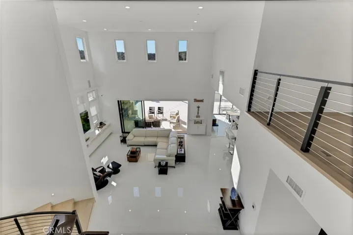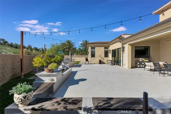 Set within the prestigious gated community of Canyon Oaks in Chatsworth, this stately contemporary estate offers approximately 5,587 square feet of refined living on an expansive lot, partially comprised of protected natural lands, with sweeping views. Designed to impress, the home delivers a clean, modern aesthetic highlighted by soaring ceilings, abundant natural light, recessed lighting throughout, and an open, flowing floorplan ideal for both everyday living and entertaining on a grand scale. A dramatic two-story formal entry leads to an awe-inspiring living room with clerestory windows, custom built-ins, and oversized sliding glass doors that dissolve the boundary between indoors and out. The showpiece kitchen features a striking black-and-white palette, white Corian countertops, automatic blinds, commercial-grade six-burner range with grill, Sub-Zero refrigerator, double ovens, walk-in pantry, and an enormous center island, leading seamlessly to the informal dining area and wet bar, all positioned to capture stunning views. A formal dining room with tray ceiling and built-in buffet adds elegance and storage space. The downstairs primary suite is a luxurious retreat with tray ceiling, crown molding, spa-caliber en-suite bath complete with double sinks, a vanity area, soaking tub, oversized multi-head shower, and expansive walk-in closet. Additional highlights include a downstairs en-suite guest bedroom, a stylish home office with glass barn door, dedicated laundry room, and convenient powder bath. A sweeping curved staircase leads to a spacious loft with wet bar and wine fridge overlooking the living space below. Upstairs, three additional en-suite bedrooms provide comfort and privacy. Designed for true indoor-outdoor living, the Arizona room and patios feature stone tile flooring, fireplace, ceiling fans, built-in seating, outdoor kitchen, water feature, grassy areas, and fruit trees, creating a resort-inspired space for you to enjoy. Additional features include Solar, multi-zone air conditioning, and high-end finishes throughout. Well situated near shopping, dining, entertainment, including the Vinyard, and major transportation thoroughfares. Don’t miss this exceptional offering in one of Chatsworth’s most exclusive enclaves.