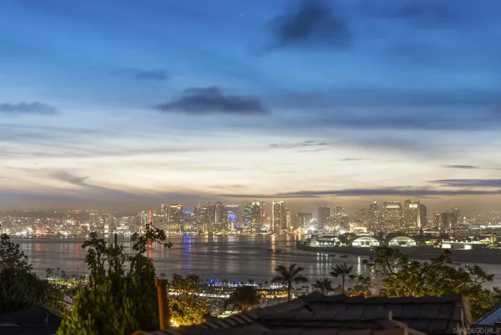 Elevated on one of Point Loma’s most prestigious streets, this bespoke residence sits on a rare ½-acre lot in the coveted La Playa & Wooded Area. The home captures sweeping panoramic views of Coronado, San Diego Bay, and the downtown skyline from nearly every room. Set on a quiet, tree-lined street, it is just minutes from Liberty Station, Sunset Cliffs, renowned dining, and top-rated schools. Expansive windows flood the interiors with natural light, highlighting a dramatic double-height living room with a curved staircase that flows into the formal dining room and modern chef’s kitchen featuring a large center island, stainless steel appliances, custom quartz countertops, and high-end finishes. The backyard is truly exceptional, setting this property apart. Designed as a private resort-style retreat, it offers a pool with waterfall & spa, outdoor fireplace & fire pit, multiple lounge & dining areas, a private basketball court (easily updated to a pickleball court), professional putting green, & a detached approximately 700 sq ft guest house ideal for ADU use, currently configured as a multi-user home office. Additional features include a three-car garage, Tesla charging, solar panels, & two gated entrances with ample off-street parking. The oversized primary suite features a fireplace, private balcony with sweeping views, and a walk-in closet with custom built-ins and skylight. Two additional oversized en-suite bedrooms complete the upper level. Experience the views, space & resort-style living this rare Point Loma estate offers.