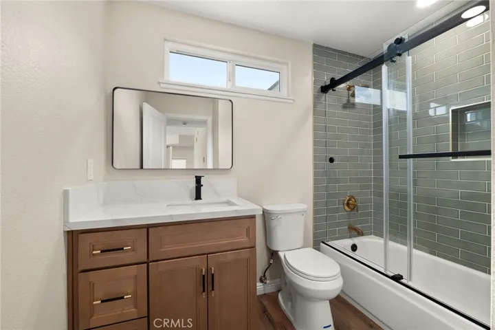 Inside, the home has been tastefully updated with stylish finishes throughout. The bathrooms feature trendy, beautifully tiled showers, and the kitchen offers clean quartz countertops and generous cabinet space. A full bedroom and bathroom downstairs provide flexibility for guests or multi-generational living.
