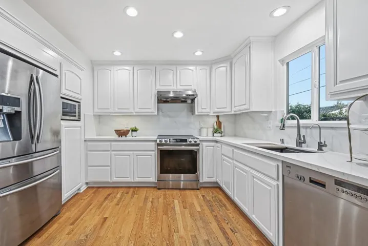Welcome to this beautiful single-family home with 3 bedrooms and 2 bathrooms in a quiet Campbell neighborhood with top campbell schoosl. A welcoming front porch leads to a living room with large windows, a skylight, and cabinetry. The modern gourmet kitchen features quartz countertops and backsplash, stainless steel appliances, ample white cabinetry, and recessed lighting. A pendant light creates a warm and comfortable atmosphere in the dining area. The family room has vaulted ceilings, skylights, recessed lighting, a fireplace, and a sliding door to the backyard deck–perfect for indoor-outdoor living. The primary suite at the rear has a spacious bedroom with backyard access and a bathroom with shower-over-tub, white tiles, and a smart toilet. Two additional bedrooms and a hallway bathroom with shower-over-tub and smart toilet accommodate family and guests. Additional conveniences include an attached two-car garage with washer and dryer. Near Saratoga, downtown Campbell, and Los Gatos, with easy access to restaurants, shopping, parks, Highway 85, and Lawrence Expressway. A home you won’t want to miss.
