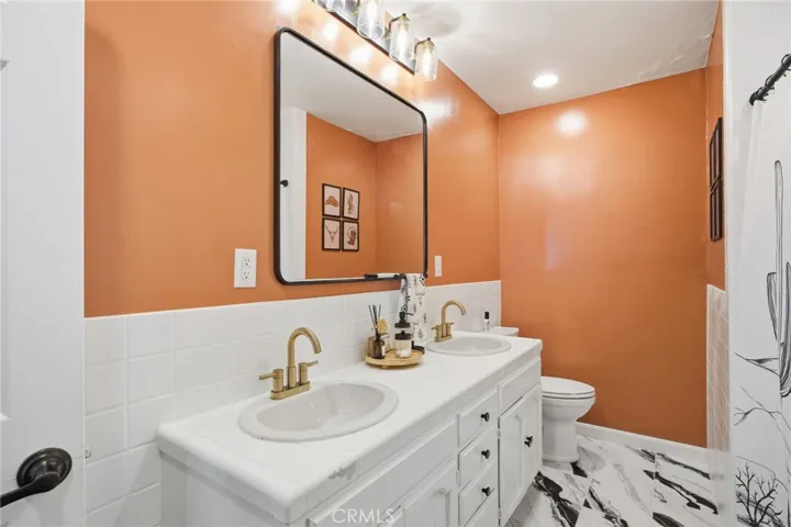 The primary suite is truly impressive, featuring beautiful wood ceilings, a spacious walk-in closet, and a fully remodeled spa-like bathroom. The primary bath includes lighted vanity mirrors, a custom glass-enclosed tiled shower, high-end fixtures, a dual vanity with a seated makeup station, and a luxurious jetted tub. The second primary suite is conveniently located on the opposite side of the home and includes its own private ensuite bathroom—ideal for guests or multi-generational living.