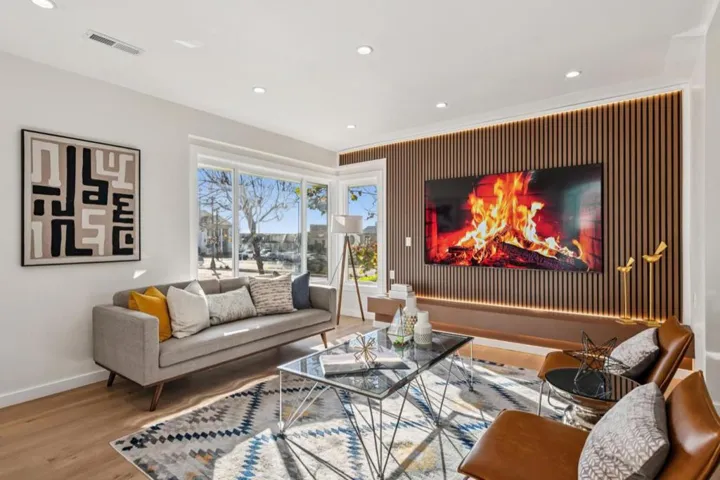 Modern, and luxurious, this rare fully detached two-story split-level home is nestled in the highly sought-after Merced Manor/Lakeside neighborhood. Completely renovated with new electrical & plumbing, all done with permits. This stunning residence offers 1,731 sq ft of thoughtfully designed living space on a 3,686 sq ft lot, featuring 4 bedrooms and 4 bathrooms, including two primary suites. The sun-filled main level showcases white oak hardwood floors, recessed lighting, and an open-concept layout with a generous living and dining area flowing into a chefs kitchen outfitted with a large island, quartz countertops, premium S/S appliances, and sleek modern cabinetry, one bedroom with Jack & Jill bathroom. Two bedrooms and two bathrooms including a primary suite are located on the upper level. The lower level features a private fourth bedroom primary suite, ideal for guests or extended family. Additional highlights include tankless water heater, EV charging plug, washer/dryer hookups, low-maintenance backyard, and a 2 car garage with driveway parking. Conveniently located near Stern Grove, Stonestown Galleria, Whole Foods, Trader Joes, Lakeshore Plaza, West Portal, public transit, SFSU, major freeways, and top-ranked Lowell High School. This exceptional home is truly a must-see.