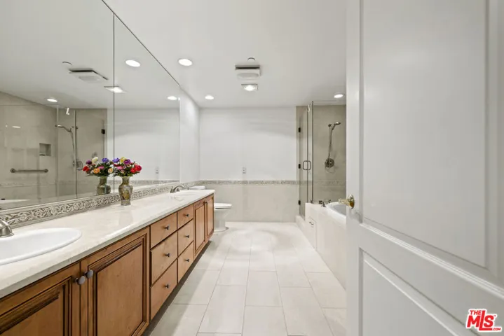 An exceptional offering in a coveted boutique building, this spacious front-facing residence spans over 1,700 square feet and is ideally situated south of Beverlywood, moments from the finest destinations in Beverly Hills. Designed for refined living and effortless entertaining, this 2-bedroom, 2.5-bath home showcases an elegant single-level floor plan filled with natural light and timeless finishes throughout. A formal entry leads to a grand living room anchored by a fireplace, seamlessly flowing into a dedicated dining area and a private balconycreating a sophisticated yet inviting atmosphere. The generously proportioned primary suite serves as a private retreat, featuring extensive closet space and a spa-like en-suite bathroom with dual vanities, a soaking tub, and a separate glass-enclosed shower. The secondary bedroom offers exceptional versatility, ideal for guests, a home office, or both. Thoughtfully appointed with granite countertops, stainless steel appliances, recessed lighting, hardwood flooring, high ceilings, and abundant storage, the residence blends luxury with everyday comfort. Additional conveniences include in-unit laundry, central HVAC, two secure parking spaces, controlled building entry, and access to an on-site fitness center. Just minutes from Beverly Drive, Century City, Rodeo Drive, and world-class dining, shopping, and entertainment, this rare single-level condo presents an outstanding opportunity to own in one of Los Angeles’ most prestigious neighborhoods.