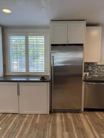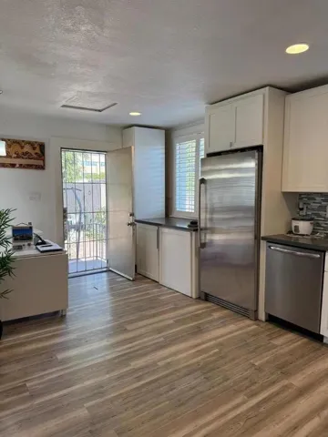 Welcome to this beautifully updated 2-bedroom, 1-bath home featuring a modern open floor plan and stylish finishes throughout. The kitchen is equipped with sleek quartz countertops, stainless steel appliances, and an elegant backsplash, seamlessly combining functionality with contemporary design. Enjoy luxury laminate vinyl plank flooring, in-unit washer and dryer conveniently tucked under the countertop, and two spacious storage sheds in the large backyard perfect for extra space or hobbies. Centrally located in a high-demand commercial area of downtown Hayward, this property offers unbeatable access to local shops, banks, restaurants, and public transportation. Perfect for those seeking the ideal balance of residential comfort and urban convenience.