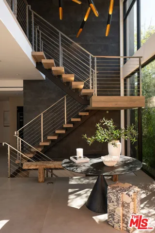 Framed in lush, mature greenery, this recently built organic-modern architectural sits privately and comfortably on one of the most desired view streets in Bel-Air. Past the gated entry and manicured gardens, an open-flow cooking, dining, and living space is flanked with Italian cabinetry and porcelain floors. A full chef’s kitchen with Miele and Thermador appliances overlooks the exterior, with unimpeded access to the rear yard through floor-to-ceiling automatic sliders. From the zero-edge pool deck, beautifully composed views of the Stone Canyon reservoir serve as the backdrop for a serene, private, and spacious outdoor living experience. A fully accommodated pool house, outdoor kitchen, and fire-pit tastefully complete a year-round alfresco lifestyle. Inside, a choice of oak-finished elevator or wood-clad staircase connects all levels of the property. An entertainer’s vision comes to light in the level below, adorned with a home cinema, refrigerated walk-in cellar, bar, and direct access to the backyard. The fully adorned primary bedroom with dual walk-in closets and unobstructed views sits upstairs, along with two additional en-suite bedrooms with private patios. Through a fully covered outdoor entertainment space, the rooftop deck enjoys 360 degree views of the reservoir, downtown Los Angeles, and the Pacific. Experience a nearly 7,000 square foot retreat in the hills of Bel-Air, confidently accommodating to even the most discerning buyers.