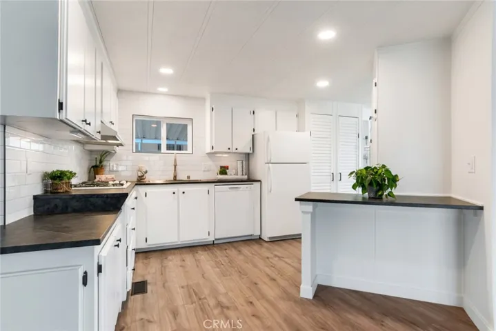 This newly updated home features fresh paint inside and out, new dual pane windows, laminate flooring, base boards, fixtures, hardware, bath vanities, countertops, window blinds and more. The central heat/AC, hot water heater and the roof are newer. (within the last few years.) Appliances include: a 5 burner cook top, oven and refrigerator and a new dishwasher. The open kitchen is bright and cheery with a full subway tile backsplash and an eating bar area. The family room area is accented with shiplap decor wood, built in shelving and a sliding door to the patio. The baths boast new contemporary vanities, accent mirrors and flooring. The large covered patio is great for entertaining and the front solar lights are economical. New stairs are on the carport side and a tough shed with double doors is great for outdoor storage. The park is very pleasant with a large pool and a spa, green areas, a club house and activities for those who like to stay connected.