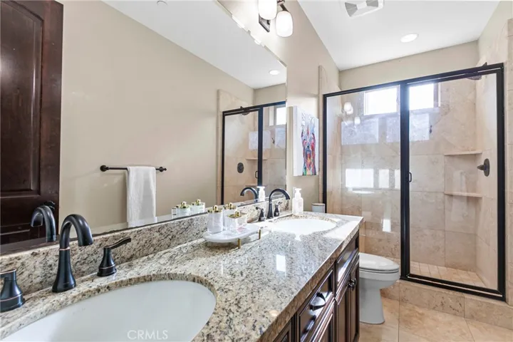 The kitchen is made for gathering, with plenty of prep space, granite counter tops with a convenient bar area, and high-end stainless-steel appliances. Finishes are dialed in: the entire main living area features high-end tile that looks like wood (beautiful and durable), the staircase and lower-level features gorgeous real wood flooring with carpet in the downstairs bedrooms. The main level primary suite feels like a retreat with dual vanities, abundant storage, a large custom walk-in closet, and a beautiful walk-in shower with a stone finish. Downstairs, guests and kids have their own space with three additional bedrooms, 2 full bathrooms, a large laundry/utility room, access to outdoor living, plus a separate family room that opens to the yard.