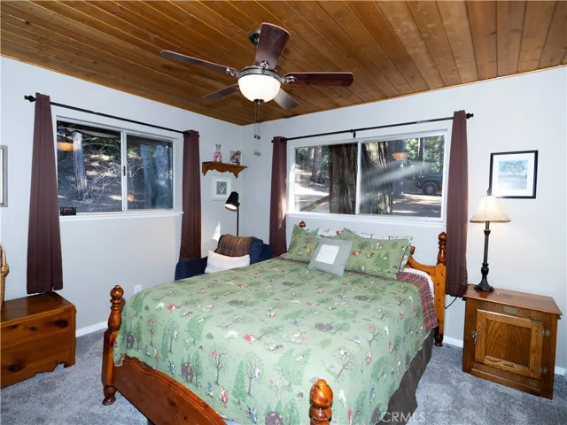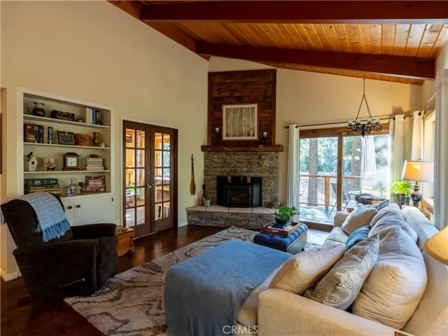 Welcome to your own special mountain place that sits on a little over an acre of land, which gives you a lot of privacy. It’s one of the original chalets in the San Moritz area that has lots of room, both on the inside and out. Most of the property is very flat and there’s an outdoor patio area with a fire pit so you can enjoy the mountain air all year round. Plenty of room for a playground area for kids, or an area that can be fenced off for the four legged kids. Ample level parking numerous vehicles close to the front door. There’s also an almost brand new storage shed to store your tools, or could be used as a private little getaway, a den, an office, a meditation room – whatever your heart desires. As you walk in the home, there’s a hallway area for you to drop off your shoes, hats and coats. At the end of the hallway the home opens up to the living area and the kitchen. The kitchen is fully equipped and has a breakfast bar that opens up to the living room. Between the kitchen and the living room is a dining area. Open beamed ceiling too! The living room has a slate faced fireplace with a wood stove insert to add extra warmth in the chilly winter days. On the front of the home just off the dining room and living room is a large wraparound deck. Another great place to enjoy the mountain air! The main bedroom is just off the kitchen and has a bathroom next to it. Off the dining room is another bedroom that has been used as an office and has a full bath next to it. The tv room is just off the living room and has a French doors and a beautiful picture window with built in seating. It was a bedroom at one time, and could be easily converted back to another bedroom. The lower level of the home features the master suite. One side of it features the sleeping area with a private bathroom, and the laundry room. The other side of the suite is a sitting room or could be a family room with its own fireplace. A beautifully maintained home, and it’s ready for you to call it your own now!