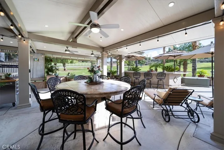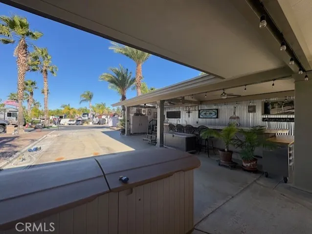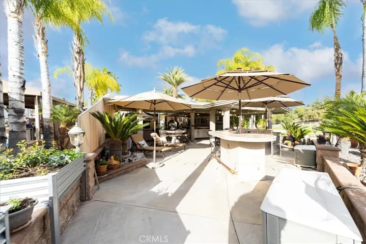 Nestled on a massive lot with no direct neighbors behind, this property offers both privacy and charm. The expansive Alumawood build-out features three islands, two elegant water features, and fantastic curb appeal. Inside, you’ll find a fully equipped setup with a dishwasher, oven, stovetop, two refrigerators, and a washer and dryer. There’s also a stone dining table, ceiling fans, and screens to keep things comfortable. Outside, a huge meadow and lots of palm trees create a beautiful atmosphere, complemented by planter for outdoor green thumb enjoyment. In addition, Rancho California RV Resort enriches your lifestyle with a host of top-tier amenities. Owners enjoy a 14-hole executive par-3 golf course at no extra cost, along with access to five pools and jacuzzis, tennis and pickleball courts, a dog park, two clubhouses, a fitness center, a fishing pond, horseshoes, and a bocce ball area. The resort is guard-gated with no age restriction, ensuring a welcoming environment for all. Monthly HOA fees cover unlimited use of the golf course, all amenities, trash pickup, and water, sewer, and common area maintenance. With financing available, the RV Resort offers the perfect blend of a private property lifestyle and a vibrant community atmosphere.