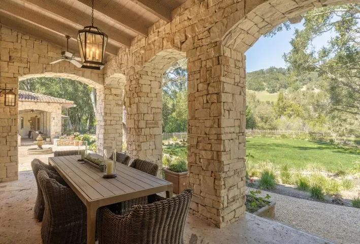 Tucked within the privacy of the Santa Lucia Preserve, rest this reimagined timeless hacienda retreat offering peace, space, and refined craftsmanship. Set on over 12 acres along a seasonal stream just beyond The Preserve Golf Club, the property is surrounded by majestic heritage oaks and a flat, usable yard that enhances its calm, natural beauty. The over 7,000 square foot estate includes 5 bedrooms and 5.5 baths, featuring a soaring great room with vaulted ceilings, formal dining room, dedicated office, wine tasting room, exquisitely updated kitchen, laundry room and pantry, and a 3-car garage. Finishes of the highest quality Carmel stone, Cantera columns, reclaimed timbers and handcrafted Canadian doors blend warmth with elegance. A thoughtfully integrated audio and lighting system completes the modern comforts. Ideal for entertaining or quiet evenings alike, the home invites seamless indoor-outdoor living, with multiple fireplaces and tranquil patios throughout. After a day spent hiking, golfing, riding or exploring the 20,000-acre Preserve, return to your own serene oasis.