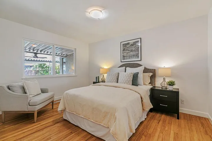 Excellent value, located in Saratoga’s coveted Golden Triangle neighborhood, this home offers access to top-rated Saratoga schools. The main level features four bedrooms including a spacious primary suite, while the upstairs bonus room with a full bathroom provides endless options for a game room, office, or family retreat. The light-filled living room boasts vaulted ceilings, floor-to-ceiling windows, and a custom stone fireplace. Additional highlights include a gourmet kitchen, hardwood floors, skylights, recessed lighting, dual-pane windows, and updated marble-finished bathrooms. Outdoor living shines with a swimming pool, cabana with an additional bathroom, garden beds, and a covered patio. A rare feature of this property is direct access to Congress Springs Park, creating a true extension of your backyard.