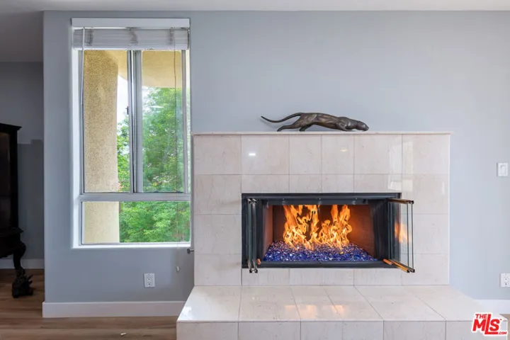 Walk into this impressive third floor corner unit with lots of natural light and a boasting 1,783 square feet of urban living space. Experience evening sunsets and night views of Century City from your expansive balconies. This huge open-concept design living room, dining room, bar area is sprawling with space, great for entertaining or just lounging in the evening on those cold nights with your marble blue crystal fireplace. Updated kitchen flaunts a new double oven and dishwasher with granite counter tops. The primary bedroom is a serene retreat with a substantial walk-in closet and ensuite full bath with dual vanity. A true primary suite. The second bedroom is also spacious with a large closet and ensuite bath. Washer and Dryer in unit with a half bath for your guests. Excellent “Beverly Hills adjacent” location off Pico and La Cienega. Walk to places of worship, EZ access to beaches, Hollywood & Downtown