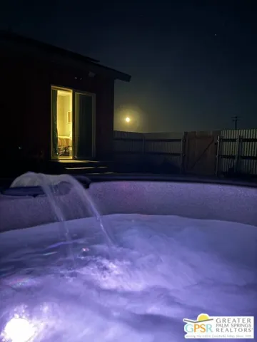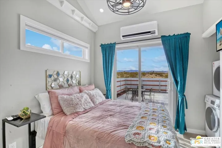 A stylish, custom luxury container home located near Joshua Tree National Park an ideal desert getaway. This cozy yet modern retreat features a private hot tub, fully stocked kitchen, and a fenced backyard designed for ultimate relaxation, complete with a fire pit and BBQ. Set on 2.5 acres of secluded desert land, the property offers exceptional privacy, breathtaking sunrise views, and world-class stargazing in a true dark-sky area. Designed to capture sweeping views of the open desert and iconic Goat Mountain, the home is both photo-worthy and thoughtfully crafted for comfort and serenity. Located just off a paved road, the property offers ample open land with potential to add additional structures, homes, or amenities. Currently operating as a successful vacation rental please call ahead to schedule your showing.
