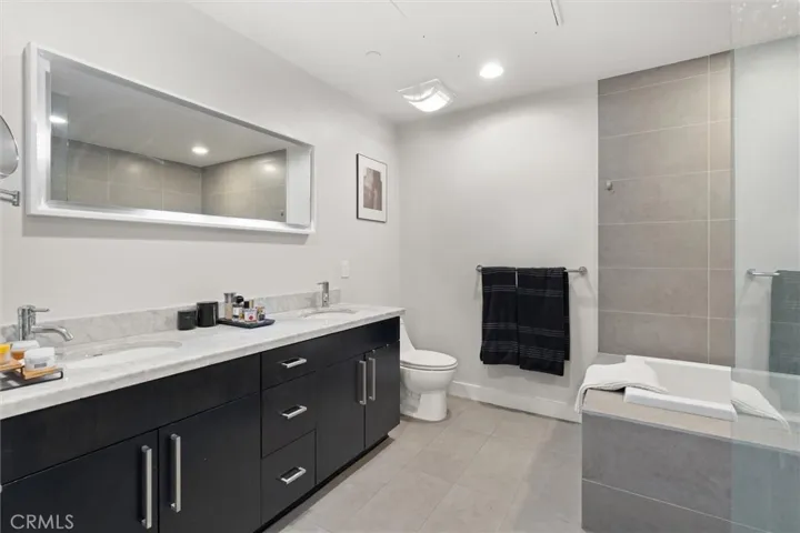 and a backlit mirror. Bedrooms are ideally located at the opposite ends of the residence to maximize privacy. Central HVAC, stacked interior laundry, two parking spaces in a gated garage, and 20 guest spots are featured. Metropol residents enjoy exclusive access to a private lobby, fully appointed fitness center, a library and tranquil courtyard garden. The Hollywood Bowl, film and TV studios, Capitol Records, and Sunset and Hollywood boulevards are moments away. For the ultimate urban experience, leave the car at home and head to the Hollywood Farmers Market, Sugar Fish Sushi, Equinox Fitness Club, Netflix’s offices, and other local hot spots.
