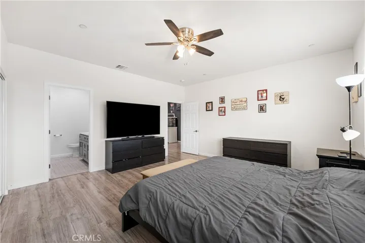The living room is generously sized and easily accommodates a variety of furniture arrangements, while the split-wing layout provides added privacy. The primary suite is oversized and offers enough room for a king-size bed plus furniture, with a luxurious en-suite bathroom featuring dual vanities and custom tile work in the shower.