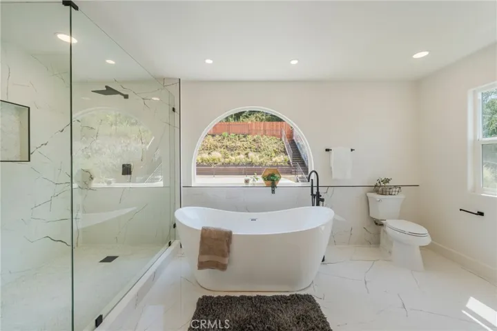 STUNNING VIEWS sweep from Century City, Santa Monica mountains, the Hollywood sign, and Downtown Los Angeles! This home is located in a highly desirable and very prestigious upper area of Baldwin Vista Hills. Massive 3,627 SQFT of livable space boasting 5 large bedrooms and 4 baths. Be mesmerized by its colossal modern curb appeal. Enter through the custom double iron door and be greeted by a totally remodeled interior design. Bright and airy formal living room consisting of 4 custom picture windows that display SPECTACULAR VIEWS of Los Angeles! Fresh new paint with newer recessed lighting that flows extremely well with refinished hardwood floors throughout the entire house. Fabulous custom and chef-inspired Euro-style kitchen cabinets with premium pure white quartz countertops with stainless steel Viking appliances. There is an oversized island in the center to complete this luxury kitchen. There is one spacious bedroom on the main floor with access to a full bathroom that has been fully renovated with clean, modern touches, and, of course, showing off its awesome views of the city! Four (4) additional bedrooms upstairs, including the fully reimagined master suite with a private Juliet balcony overlooking the entire neighborhood to Downtown Los Angeles. The master suite has 2 separate vanity sinks, an oversized walk-in shower, and a separate chic stand-alone tub for you to relax. Step outside onto a lush backyard with an awesome tri-level design with stairs that lead up to the private top deck with even a greater PANORAMIC VIEW OF LOS ANGELES! Prestigious home in a great location with all the custom features that exude the aroma of a luxury home. This is 5714 Brushton St!
