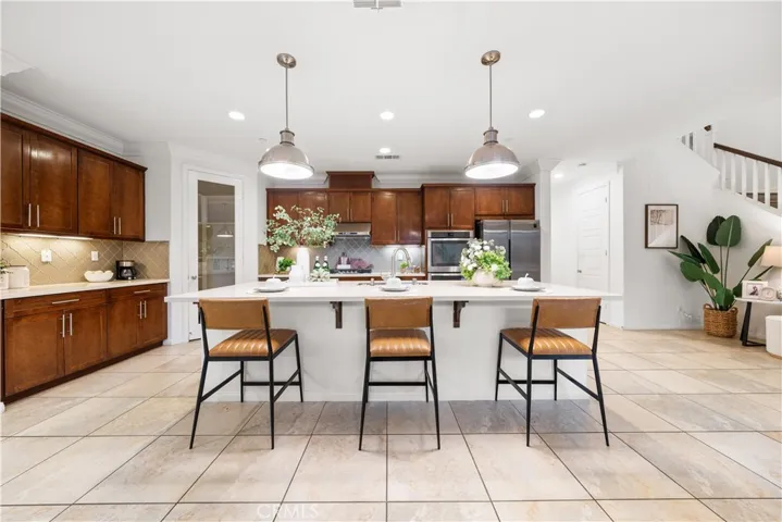 Welcome to this stunning home located in highly desirable community of The Lodge of Eastvale, This 3194 sqft home features 5 bedrooms and 4.5 bathrooms with additional office and loft. Fully upgraded like a model home, whole house ceiling speaker system, One bedroom and full bathroom suite sitting on the main floor, ideal for elderly people. Open concept floor plan with beautiful stone look tile on the living area and kitchen offering elegant vibe for this home. Hard to find one office next to dinning area with overlook open frame and gorgeous book shelf perfect for your work from home. Step upstairs, a comfort loft can be easily convert to game room or family room. The oversized master suite showcase a dual sink walk-in shower and deep soaking tub. Seller will payoff the solar system at the time of closing. HOA amenities include swimming pool, club house, fitness room and more with no extra charges. Close to awarding wining schools and popular Eastvale shopping center.