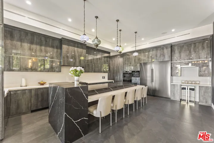 Set high in the Hollywood Hills, this designer estate by Alon Zakoot blends modern design with a twinkling of romantic Old World charm, offering privacy, sophistication, and the essence of a true California getaway. From its elevated perch, enjoy panoramic views with Universal Studios’ iconic Harry Potter castle as your backdrop. Property was built in 2022, property first occupied in 2023. Inside, timeless finishes meet artistic detail. Stone floors flow into a chef’s kitchen with premium appliances, while handcrafted Moroccan lighting sets the mood in the dining space. The living room, crowned with a luminous ceiling and framed by retractable glass doors, opens seamlessly to the outdoors connecting to an oversized infinity pool suspended 20 feet above ground, lush gardens, and expansive entertaining areas.The primary suite offers a private sanctuary with a balcony, spa-like bath, and generous closet space. All six bedrooms feature unique details, private balconies, and outdoor privacy. A family room with direct access to the outdoor lounge invites effortless gatherings. This estate is designed for both comfort and entertainment, with an elevator, rooftop deck, outdoor kitchen, poolside BBQ, and resort-like greenery. An ADU adds flexibility for guests or extended living. More than a home, this is a lifestyle.
