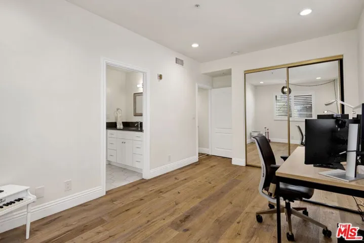 Welcome home to a Contemporary Mediterranean townhome with a sunlit private terrace in one of Brentwood’s most desirable pockets. Behind double mahogany doors, a generous great room with fireplace flows through French doors to a lush garden terrace – seamless indoor/outdoor living at its best. A stylish wet bar with built-in wine cellar and mirrored backsplash makes hosting feel effortless. The updated kitchen is both crisp and practical, featuring stainless steel appliances, quartz countertops, under-cabinet lighting, abundant storage, and a walk-in pantry. Upstairs, the home’s bedroom level is quiet and refined, highlighted by a peaceful primary suite with walk-in closet and a spa-inspired bath with soaking tub, plus two additional bedrooms – one with a walk-in closet – connected by a Jack-and-Jill bathroom for flexible living. Wide-plank floors, recessed lighting, in-unit laundry, and gated parking complete the package. Moments away, enjoy a flat walk to San Vicente’s cafes, dining, fitness studios, and the Sunday Brentwood Farmers’ Market, with easy access to Brentwood Village, Barrington Rec Center, and nearby parks. Located within highly regarded LAUSD 90049 school options. HOA covers building maintenance, building insurance, water, and common-area electricity. Offer Deadline: January 27th at 5:00 PM.